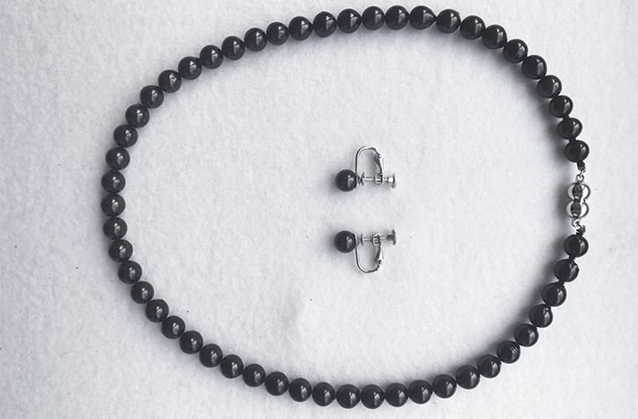 慶弔のみならずシックな装いにぴったりと合うネックレス・ピアス(イヤリング)セットです。